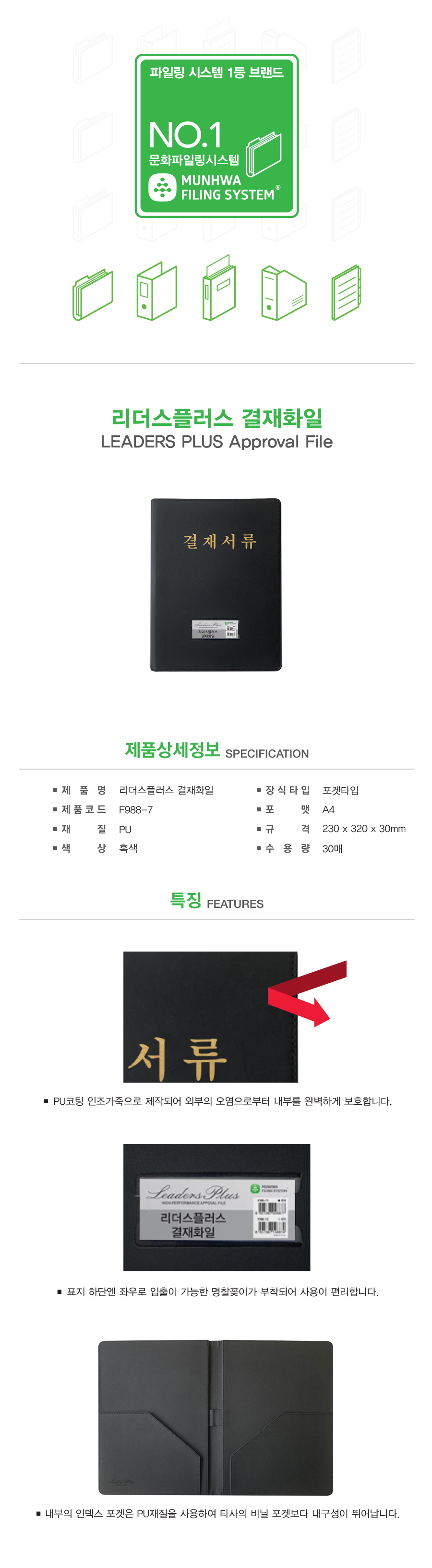 ■ 품명 및 모델명 : 리더스플러스 결재화일(A4/F988-7/문화산업)