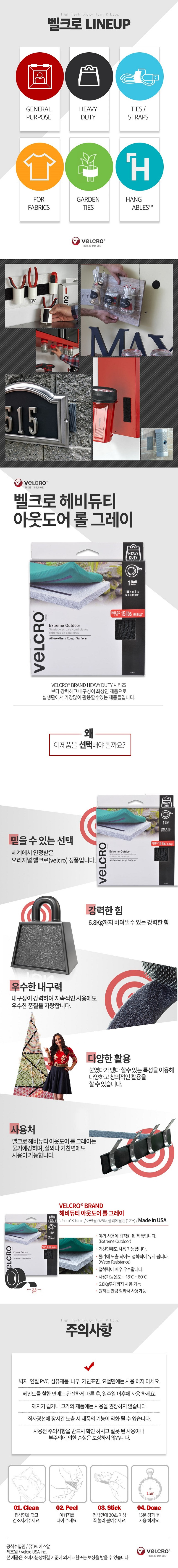 벨크로 헤비듀티 아웃도어 롤(그레이/3m*25mm/91365/Velcro)