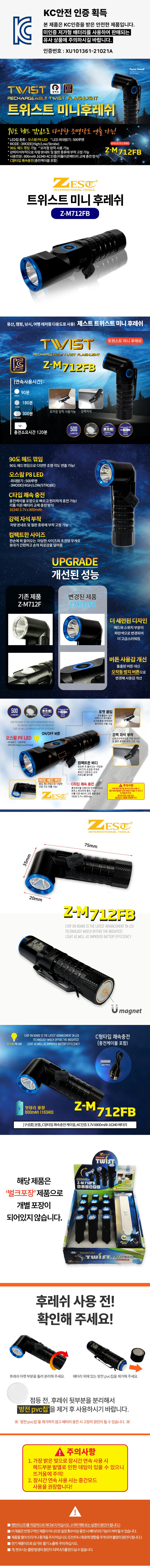 ■ 품명 및 모델명 : 제스트 LED 손전등 헤드꺾임 후레쉬 충전랜턴 Z-M712FB JW