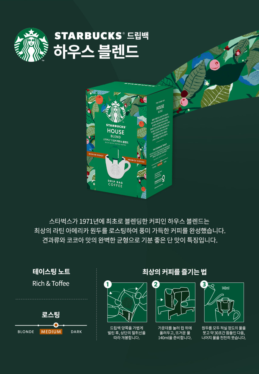 [업체별도배송]스타벅스 드립백 하우스 블렌드(9g*5T/네슬레코리아)
