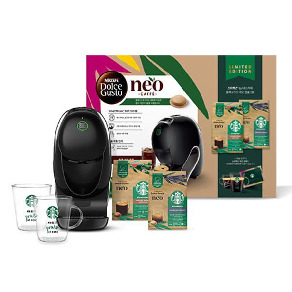 [업체별도배송]돌체구스토 네오블랙 스타벅스 앳홈 팩(네오머신블랙+캡슐2종+글라스2개/네슬레코리아)