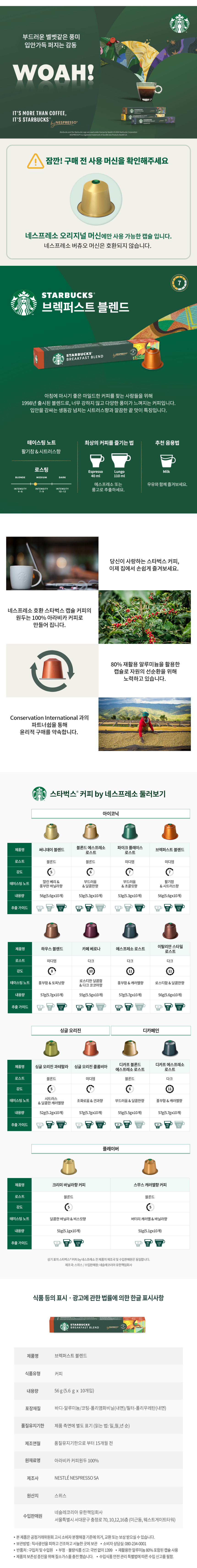 [업체별도배송]스타벅스 아이코닉 브렉퍼스트 블렌드(캡슐/네스프레소전용/10개입)