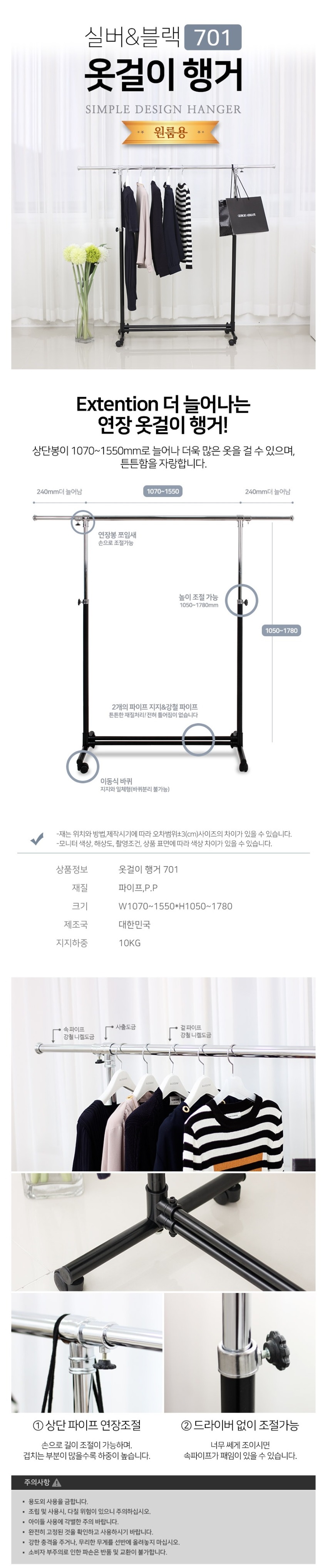 ■ 품명 및 모델명 : [업체별도배송]매장 이동식 행거 701(W1070~1550*H1050~1780)