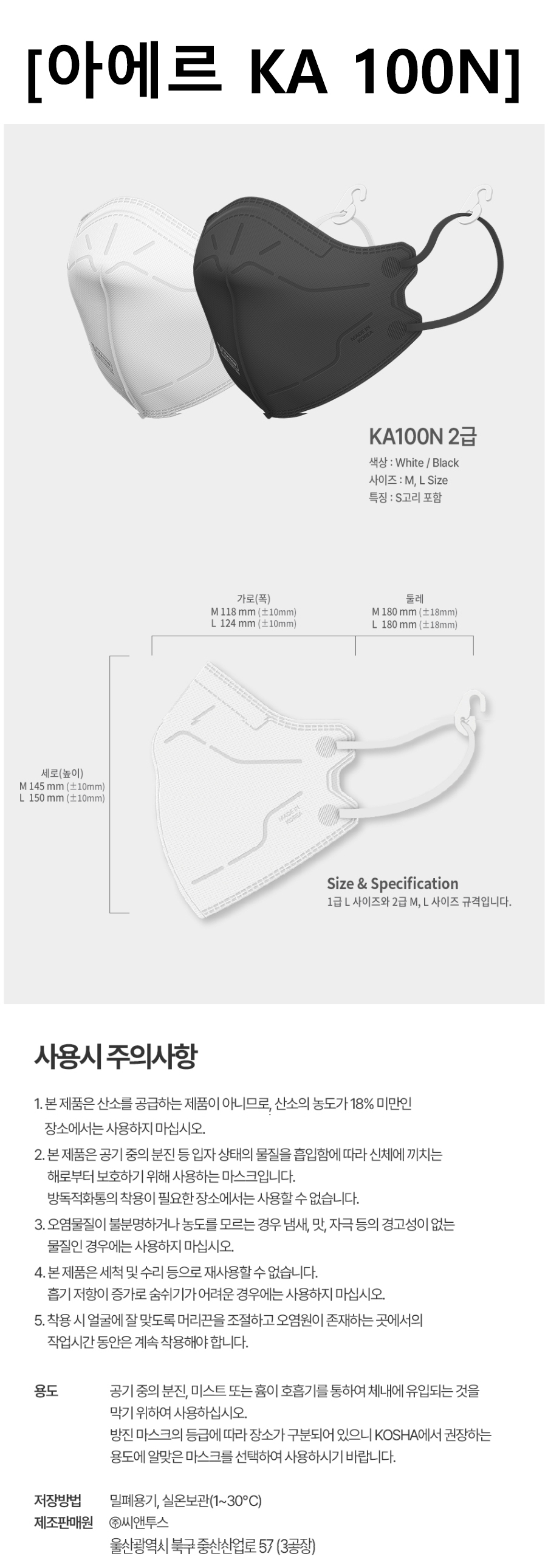 ■ 품명 및 모델명 : 아에르 KA100N 화이트 M 10개입